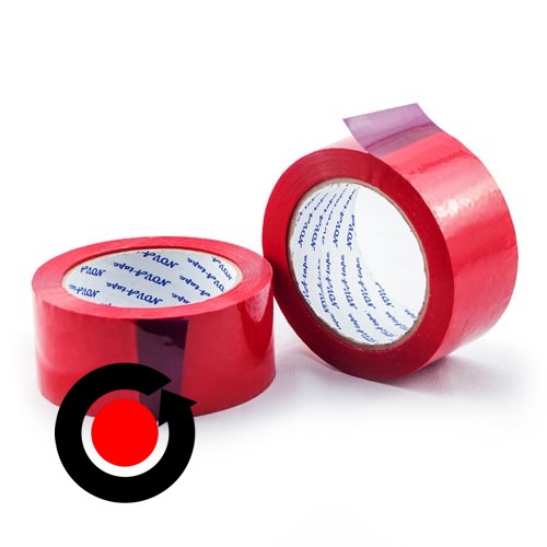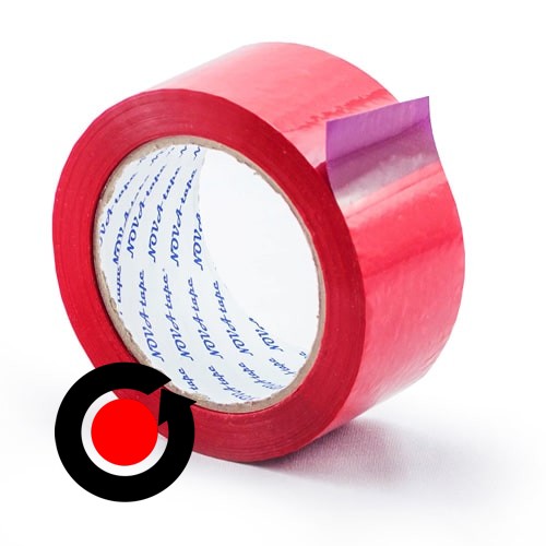 Інтернет-магазин пропонує купити клейку стрічку 40 мкм червоного кольору, вироблену з поліпропілену високої якості. Завдяки барвнику, внесеного до складу, смуги матеріалу виділяються на фоні стандартної пакувальної тари. На полімерну основу рівномірно і рясно нанесений шар акрилового клею товщиною 40-45 мікрон.